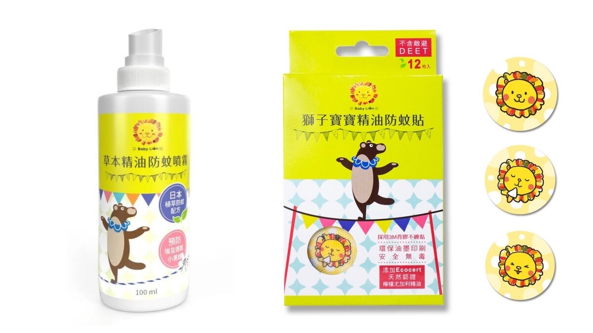 許多媽媽愛用的獅子寶寶草本精油防蚊噴霧,添加Ecocert認證檸檬尤加利精油、EPA公告有效驅蚊之植物性萃取物為主要成份。訴求無添加DEET、樟腦、香料、色素、防腐劑,讓很多人用起來更安心。除了防蚊液,還貼心推出以環保油墨印刷的獅子寶寶精油防蚊貼,貼在身上就能驅離蚊蟲。
