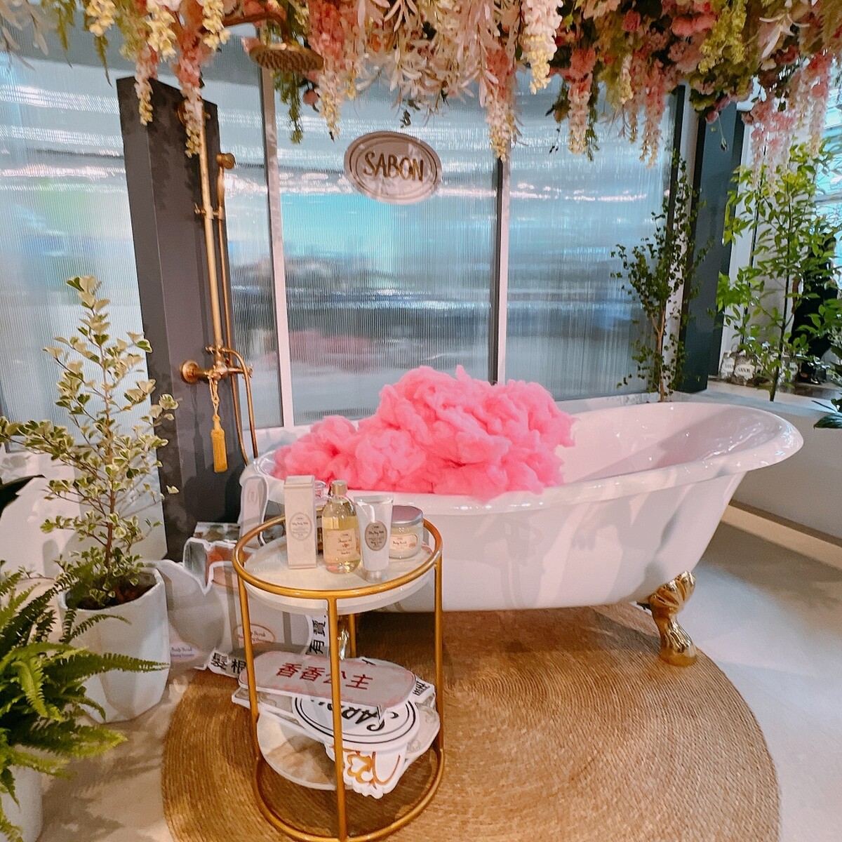讓少女心瞬間淪陷的粉紅泡泡浴缸,搭配SABON最夢幻的浪漫花園造景,可以名副其實的沉浸在浴缸裡體驗療癒氛圍,營造每位女孩最放鬆的粉紅沐浴時光。