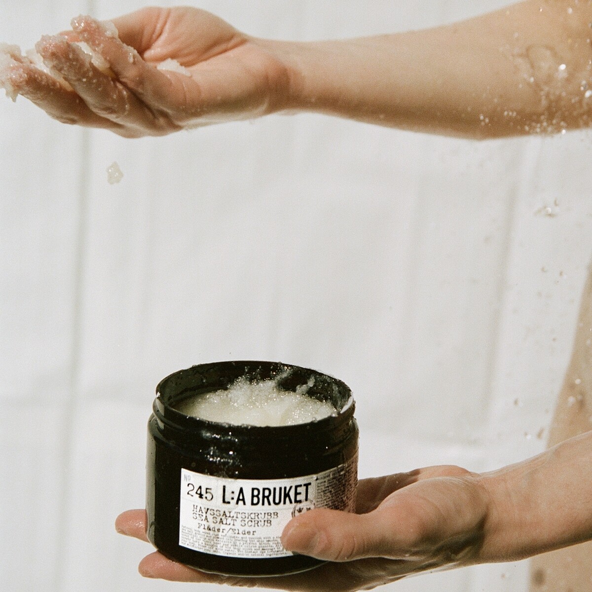 使用海鹽為身體皮膚深層淨化、去角質,是瑞典西岸傳統海洋浴最具代表性的作法之一。 L:a Bruket以當代方式重新演繹古老智慧,結合甜杏仁油、紅花籽油、菜籽油,為肌膚補充維生素與必需脂肪酸,淨化柔嫩肌膚之餘賦予柔軟滑細膚觸。