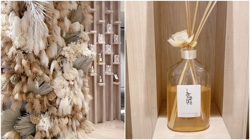 Sakura Spa一共設置八間單、雙人包廂,現場空間邀請療癒系花草品牌「草肉食堂」為店內打造花藝視覺,使用飄逸的蘆葦柔和整體氛圍,自然的色調讓人一進入店內,就能感受到和諧寧靜氣氛。
