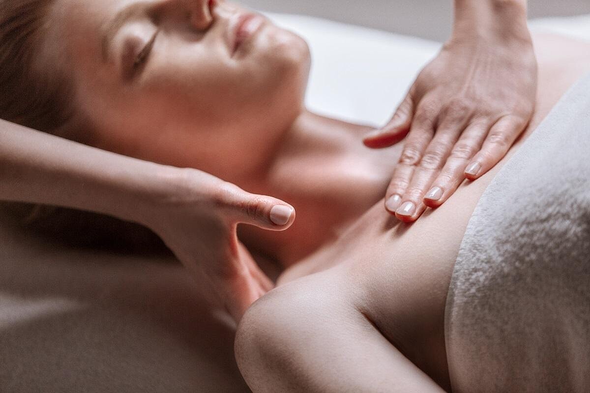 護膚師先會在脖子下和下巴平滑按摩,達到活化喚醒效果,並以橢圓手法深層平滑下巴肌肉。透過雙手交替的舒緩按摩咬合肌,達到緊緻輪廓的功效。再緩慢地移動至上方臉部,輕柔撫平額頭、眼周、及髮際線,完整放鬆全臉。