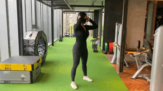 今天分享的第一組是深蹲組合式動作,深蹲可提升臀線,美化腿部線條,也能減去臀部多餘的脂肪,然後也能鍛鍊到身體各個關節,讓你更靈活,最重要的是能增強心肺功能,還能幫助新陳代謝。