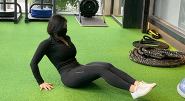 在練習的過程記得屁股要先動,重心不可以跑到膝蓋,勾腳的時候膝蓋要超過水平面,大腿要盡量高於水平面的角度,這樣的訓練效果會比較好一點!