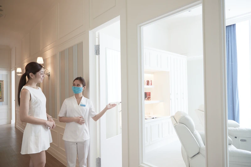 旗艦館一共有6間SPA療程房,皆設有獨立衛浴,二間VIP套房更超過10坪服務空間,能享受落地窗景徜徉綠蔭,還設置有飯店等級浴缸供泡澡,套房作為特別預約房型,為閨密及夫妻提供最高級服務。