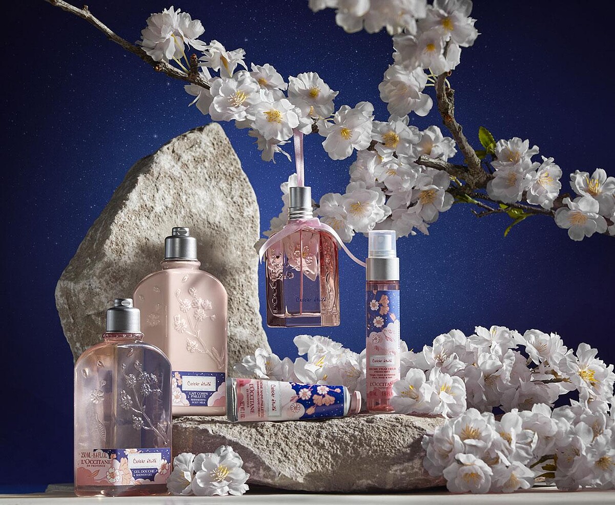 來自普羅旺斯呂貝宏地區的櫻花花露及櫻桃萃取,使肌膚更加潤澤柔軟,蘊含乳油木果油能保濕、柔嫩雙手。質地輕盈,隨時隨地使用,有效舒緩頻繁清潔、酒精防毒而造成的乾燥不適,蘊含細緻雲母粉末使用後雙手閃耀如繁星映照的柔和光澤,散發細膩優雅花香。