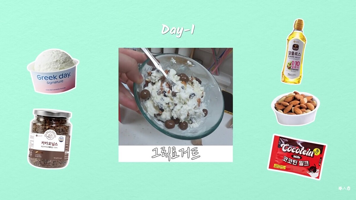 李秀賢以「希臘優格」代替晚餐的主食。她還在優格中加入2至3茶匙的可可粒、少量可可脂牛奶、少量堅果,以及加入熱量只有一般糖的1/10的阿洛酮糖和甜菊糖,讓吃起來的味道豐富、營養也更全面,是可以持續吃下去的組合。