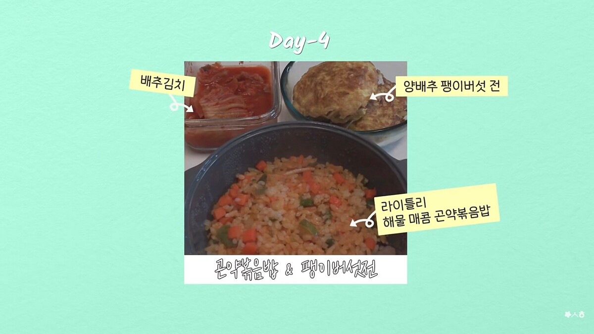 Day 4:魔芋炒飯+捲心菜金針菇煎蛋+泡菜