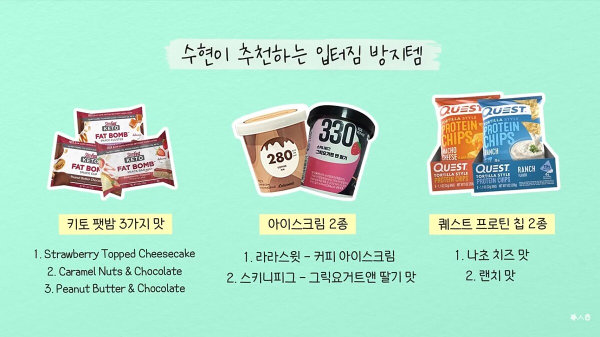 同時也推薦了一些減重期間嘴饞時可以吃的低卡零食,比起一般零食相比熱量更低、含糖量更少,但還是要控制每一次食用的份量。