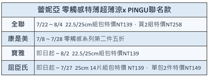 「蕾妮亞超薄涼x PINGU」再度舒涼登場!即使生理期遇上酷熱夏季也能讓妳舒涼一夏!