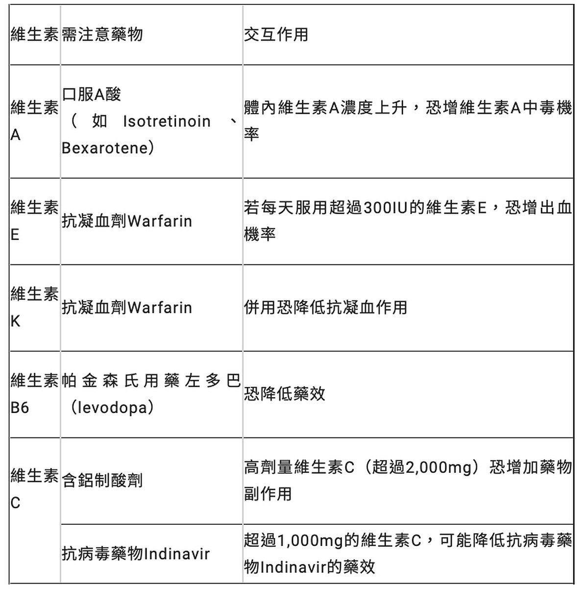 常見維生素恐和這些藥物產生交互作用