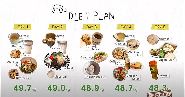 除了分享方法之外,韓藝瑟也同時公開了自己的5日減重菜單。