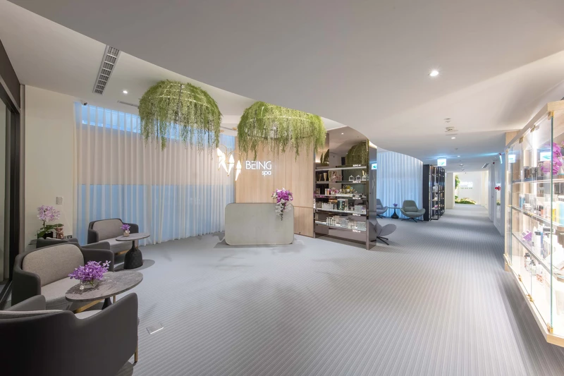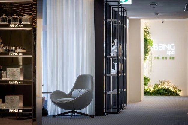 有別於過往Spa幽暗沉靜的風格,新一代的紓壓沙龍,更喜歡融合大自然的能量,將風景引入環境,創造更寬闊的氣氛。位於時代寓所二樓的 BEING spa就是這樣鬧中取靜、遠離塵囂的世外桃源。順著弧形曲線的天花造型引領賓客緩步進入,以純淨白背景結合生氣盎然的光影綠蔭加以點綴,搭配舒緩芬芳氣息,療程還沒開始,我的身、心、靈都先做好「重生」的準備。