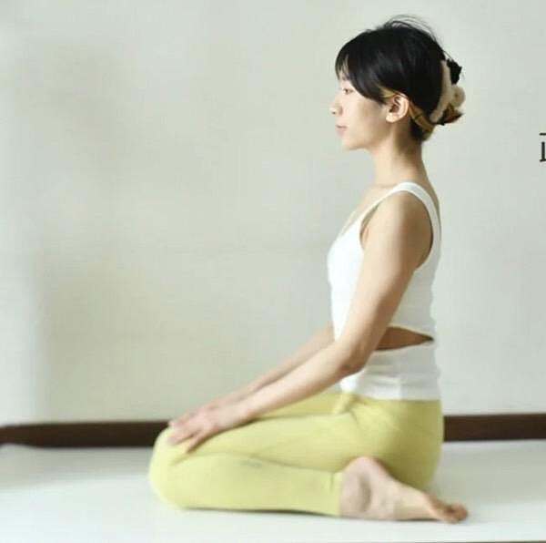 動作一開始是將雙腿跪在地上,臀部坐於腳跟上,注意上半身的肩膀是要往下沉的,雙手放於大腿上,後背則是保持一條直線,這個動作可以幫助排便,大概坐個10分鐘就有想便便的感覺,滑手機看電視的時候都可以做喔。