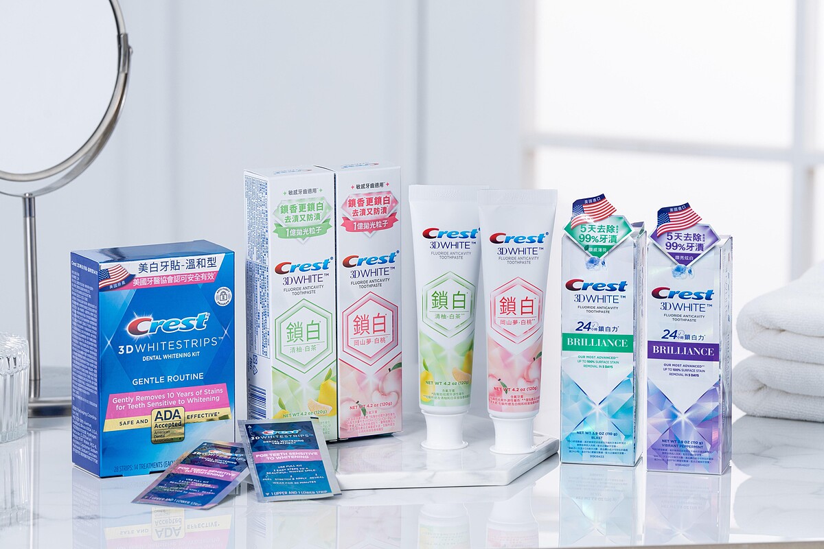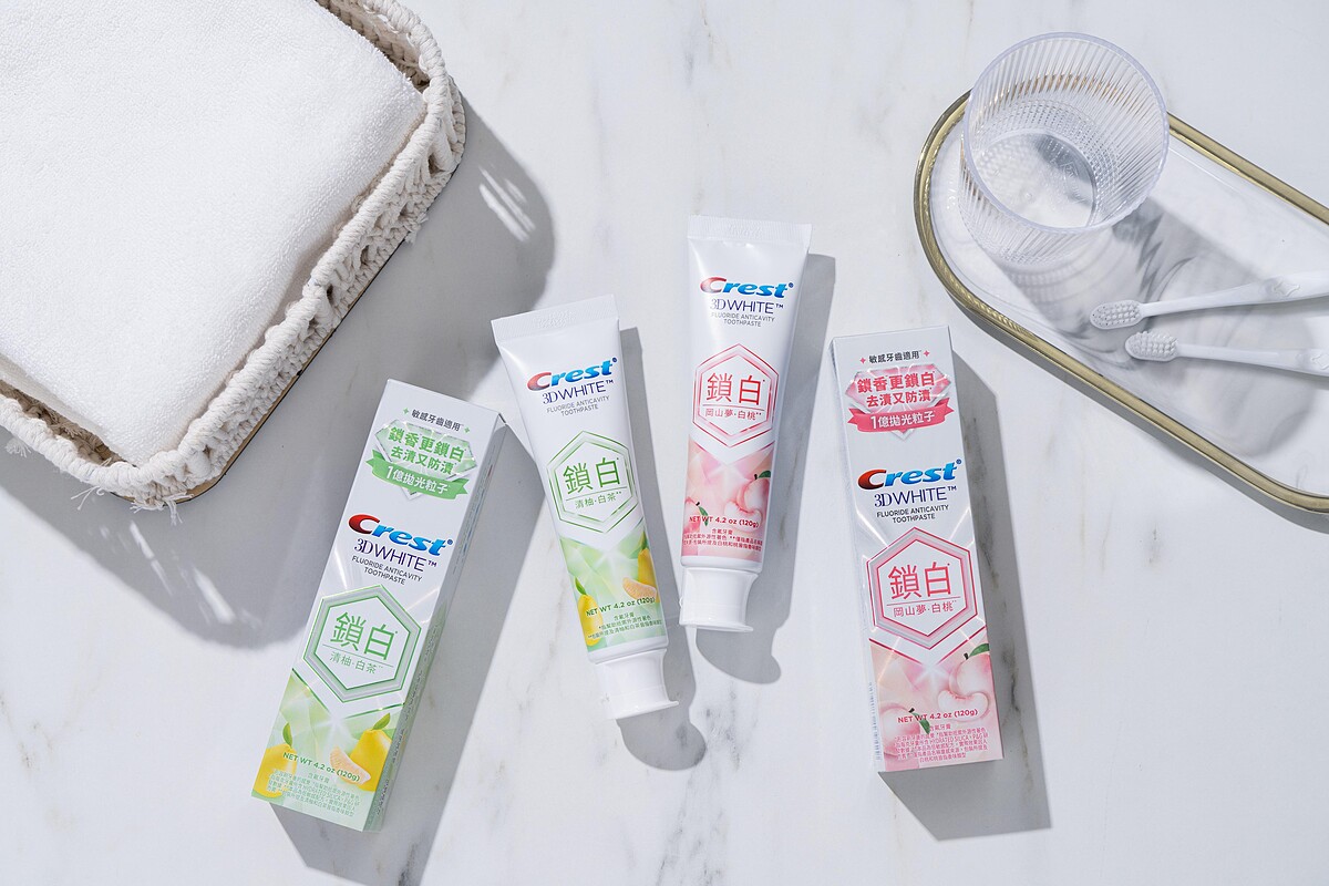 當然,如果妳是屬於偏好積極高效率的極致美白派,那麼除了「Crest香氛鎖白牙膏」之外,也可以選擇Crest的「極致鑽白牙膏」與「溫和型3D美白牙貼」,來作為日常搭配交互使用,14天就能快速打造鑽白美齒,更有效率地打造出放閃自信笑容!