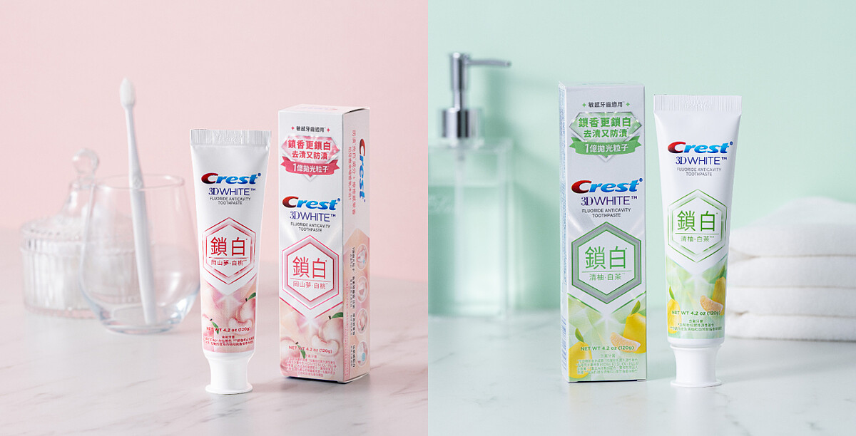 全新的「Crest香氛鎖白牙膏」除了在配方上再進化升級,不同於一般牙膏既定印象的清涼薄荷香,特別以日本經典水果為香型靈感,推出「岡山夢・白桃」與「清柚・白茶」兩款限定香味,難怪被網友譽為是牙膏界的小清新!大家不但能依自己的喜好挑選不同的香型,連牙膏體上也特別用心做出雙色設計的高顏值,從視覺到嗅覺既夢幻又療癒,身為香氛控的M編當然是全收!