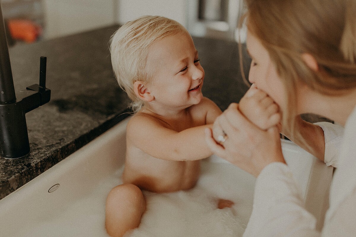 Step1溫和洗沐:藉泡澡時間停留,寶寶肌膚得以舒緩,接續洗澡抹去日常髒污。