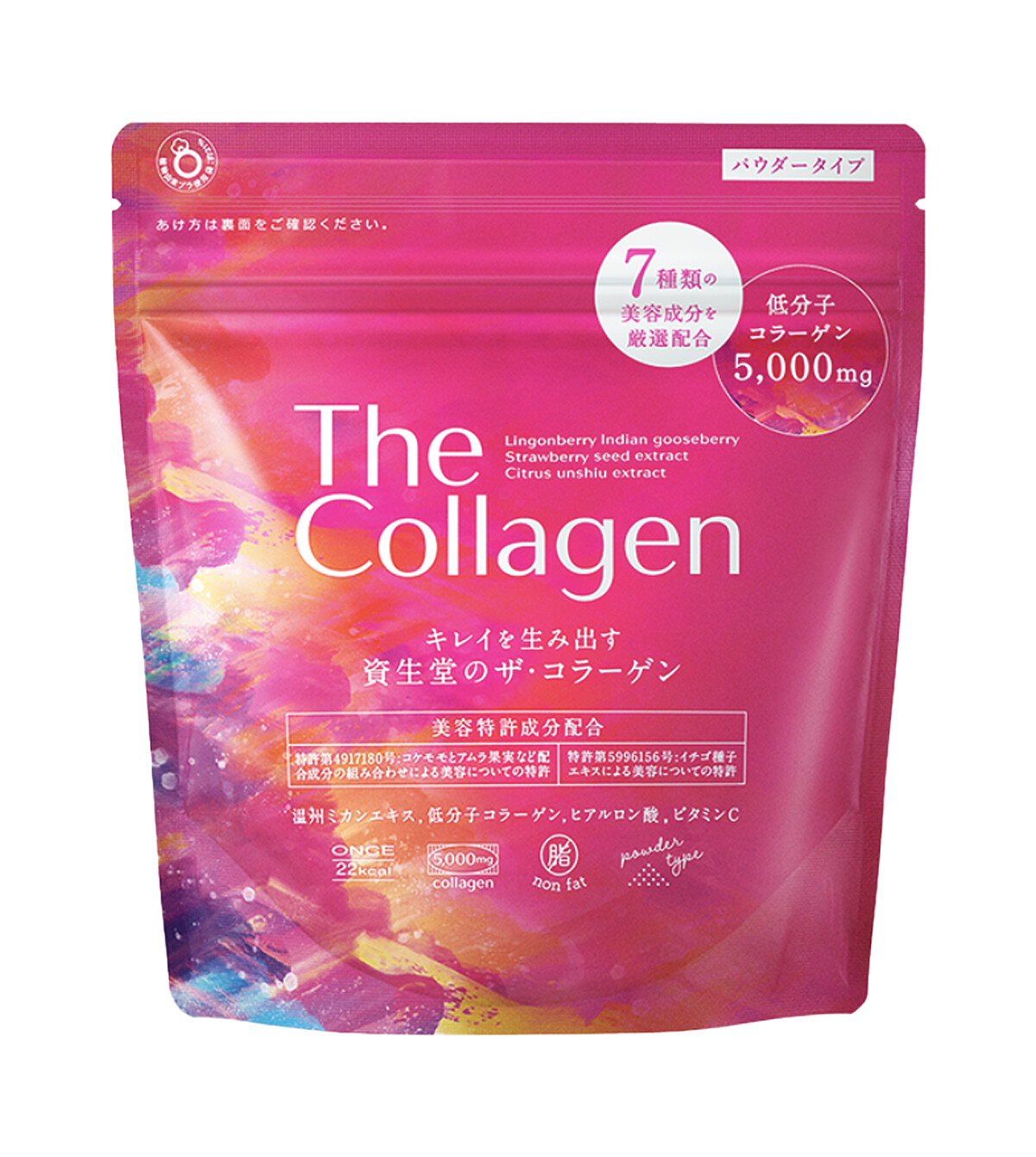 源自超級果實的美容專利成分(越橘+餘甘子果實)、草莓種子萃取物及溫州蜜柑萃取物、透明質酸及維生素C等7種美容成分,是一款去除了膠原蛋白特有味道與氣味的粉劑,可以每天的飲食生活增添美麗。142g NT.408