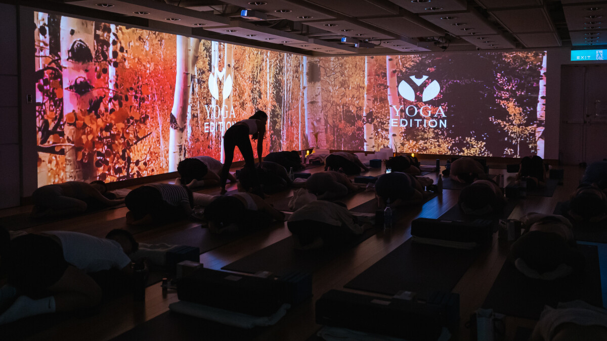 YOGA Edition 於2023年11月份獻出療癒感十足的【沈浸式水晶頌缽芳療瑜珈】,利用投影裝置打造沉浸式體驗,讓你彷彿置身於山林間,鼻息間更可聞到淡淡的木質香氣,讓每位參與的人皆能暫時遠離塵囂。