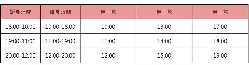 由此可見,根據不同的進食時間、空腹頻率,就會衍生出不一樣的斷食法: