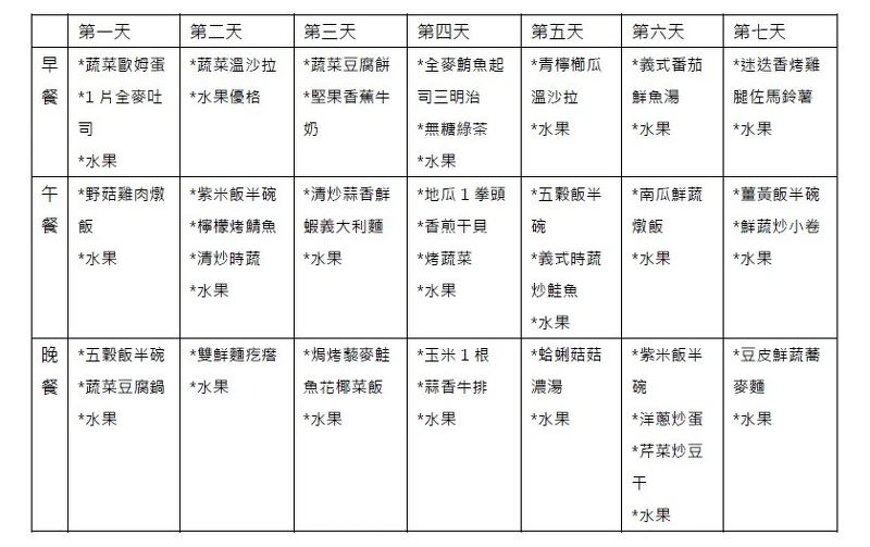 營養師建議的「地中海飲食」一週三餐菜單規劃: