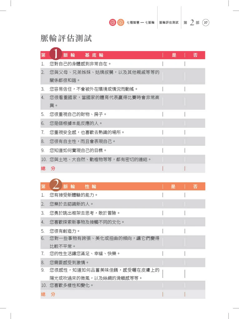 想知道自己的七個脈輪是否平衡,可以參考下面表格的測驗