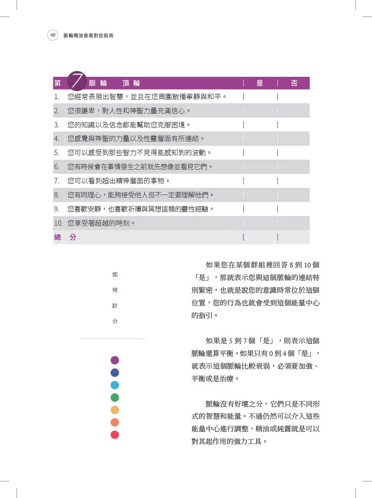 (想知道更多脈輪與精油之間的關係請參考《脈輪精油香氣對症指南:7大脈輪平衡X情緒穩定的250款精油療癒配方》)