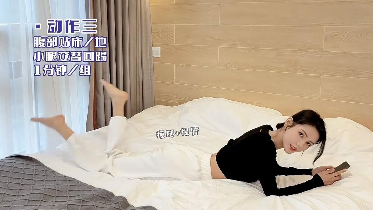 轉身平趴在床上或瑜珈墊上,小腿勾起交替回踢,用腳後跟找屁股,一分鐘一組,輕鬆就能瘦腿又提臀。