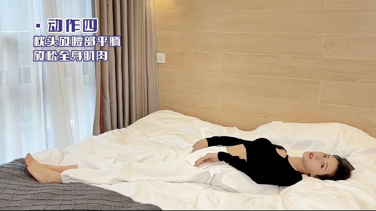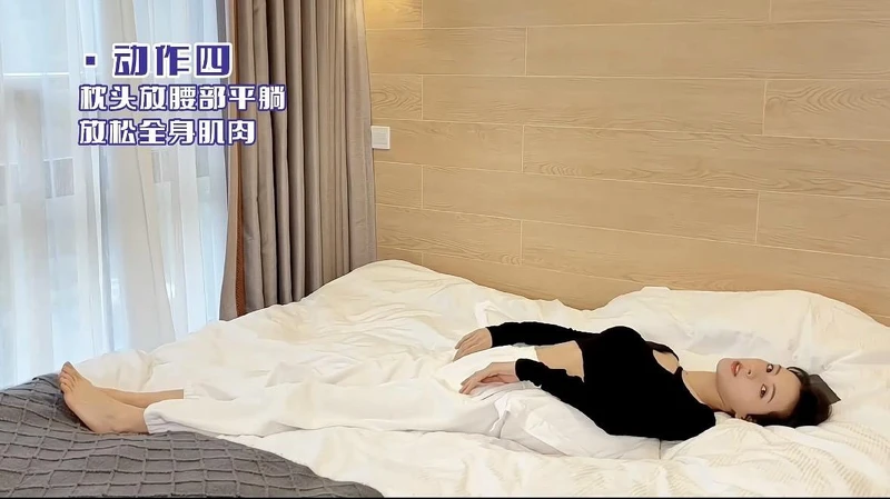 最後將進行全身伸展,拿醫科枕頭墊在後腰處平躺,幫助放鬆全身肌肉,以上動作都能一邊追劇一邊完成喔。