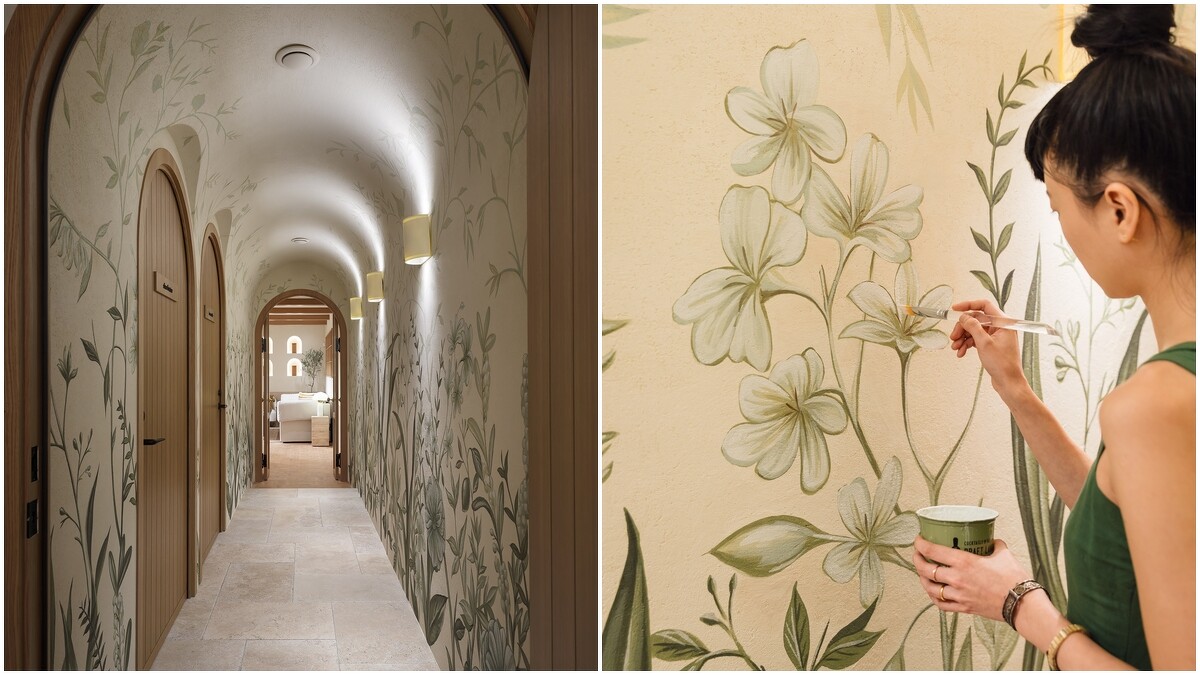 穿梭於 Spa L’OCCITANE 中山二店的空間之中,最令人駐足驚豔的,是走道上一幅由台灣藝術家陳于安繪製的壁畫。以歐舒丹保養品成分蘊含的天然植物為靈感,施展空間魔法的手繪壁畫,自由地將馬鞭草、藍薑、玫瑰、香水檸檬、伊蘭伊蘭等自然之花交織出一幅彷彿能嗅聞香氣的植物樂園。