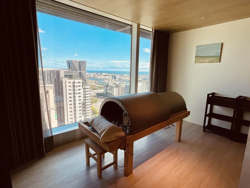 位於22樓的絕佳地理位置,且每個SPA房都有大面落地窗、透視感十足非常寬廣,另外附有獨立衛浴更是可以邊泡澡邊享受海洋美景;配合不同的療程房內設有獨立岩盤浴,更有隱私。