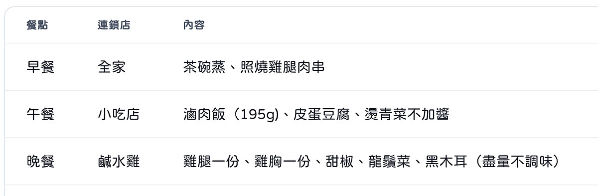 - 05. 清燙青菜是避免肉燥的高熱量和油脂,但增肌當中或是一天當中幾乎沒有進食,就正常請店家淋肉燥沒關係