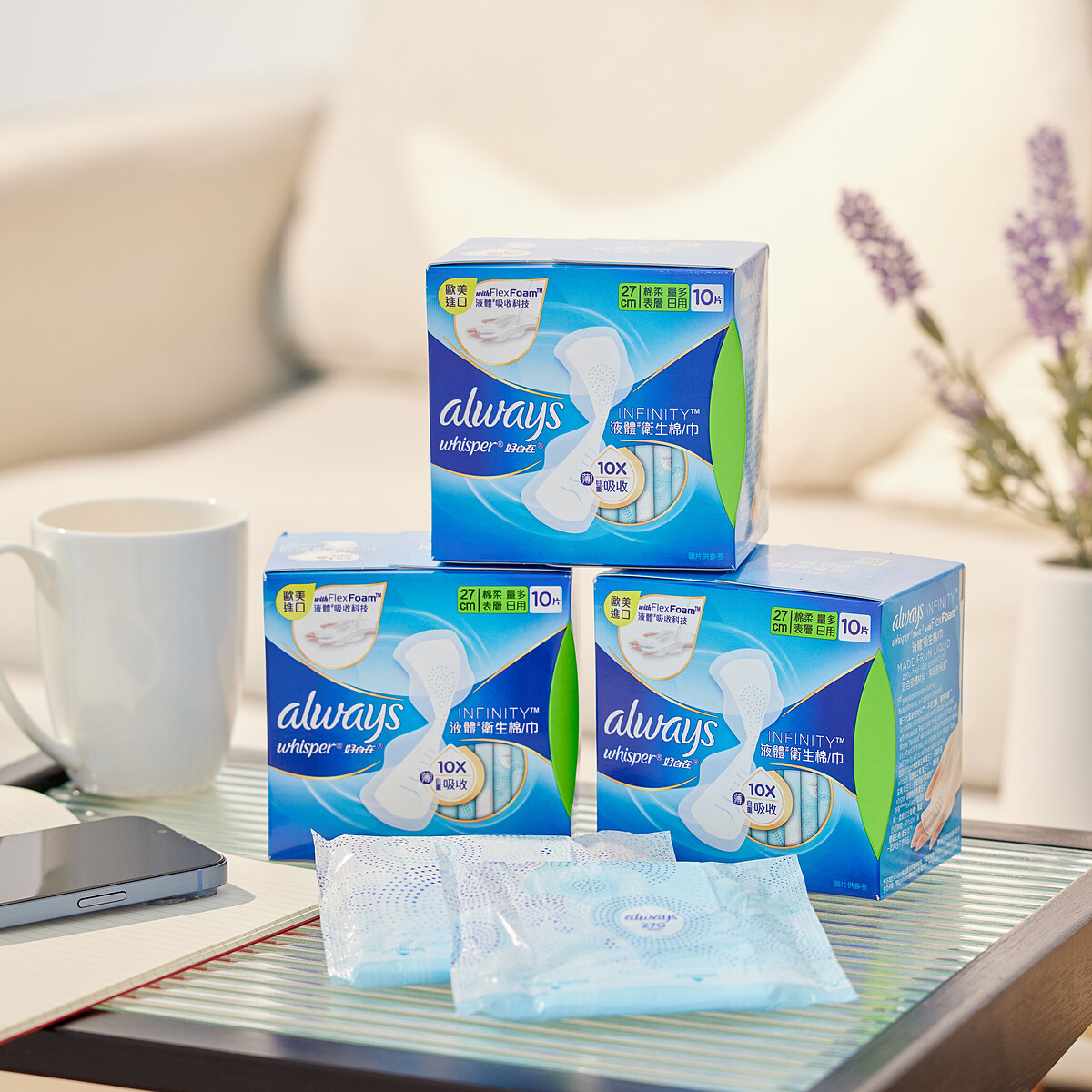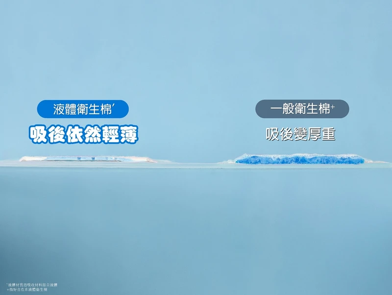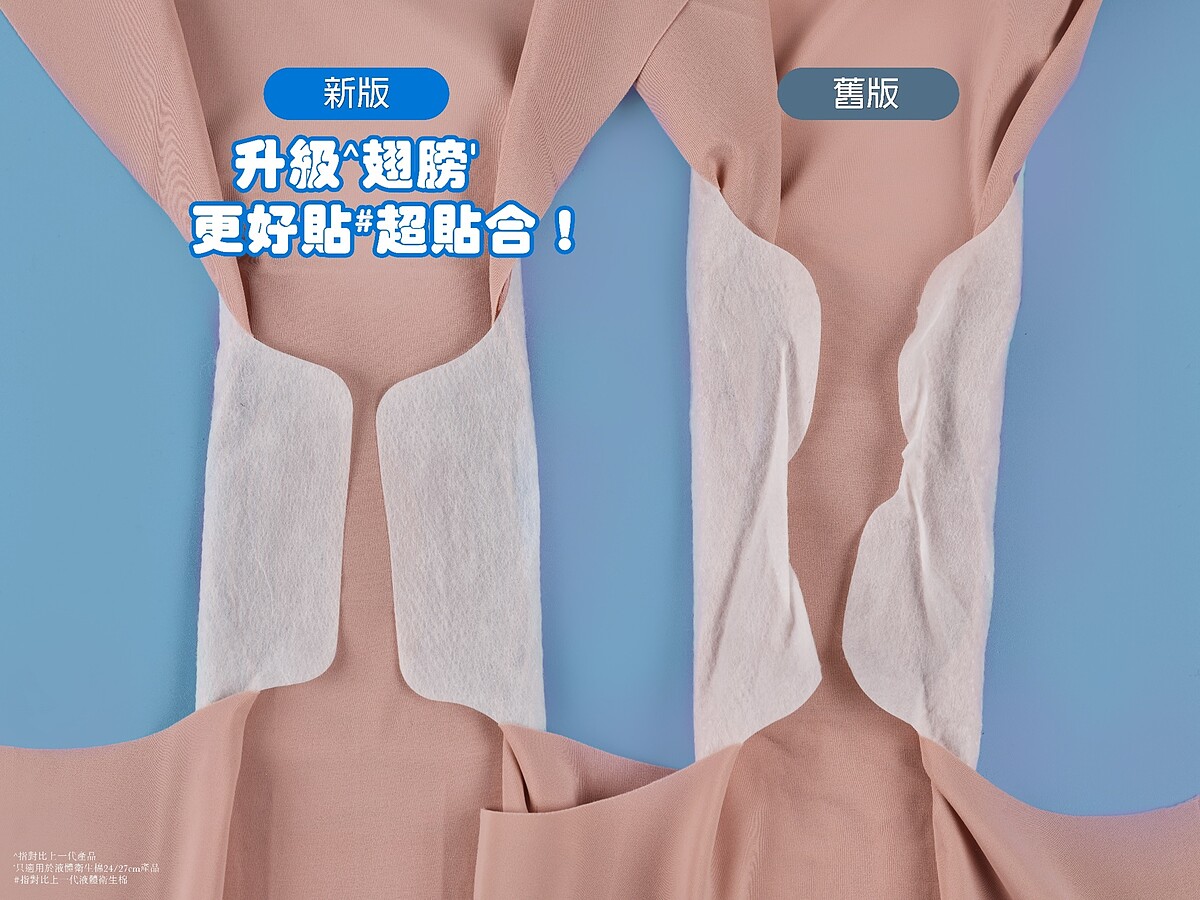貼合度提升20%︰指對比上一代液體衛生棉240/270mm產品,數據來自P&G研發中心