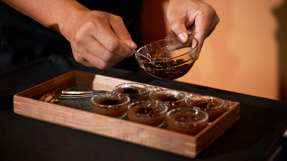 以油脂、肉骨與藥膳湯底熬燉萃取而成,苦中帶甘、甘中有鹹,溫潤而有餘韻,藥香與肉香交互作用,肉骨茶帶有鮮濃的肉香,配上香料的獨特香味,加上慢慢滲出濃郁而不苦澀的藥材味道,塑造了肉骨茶令人難忘的特別濃香。