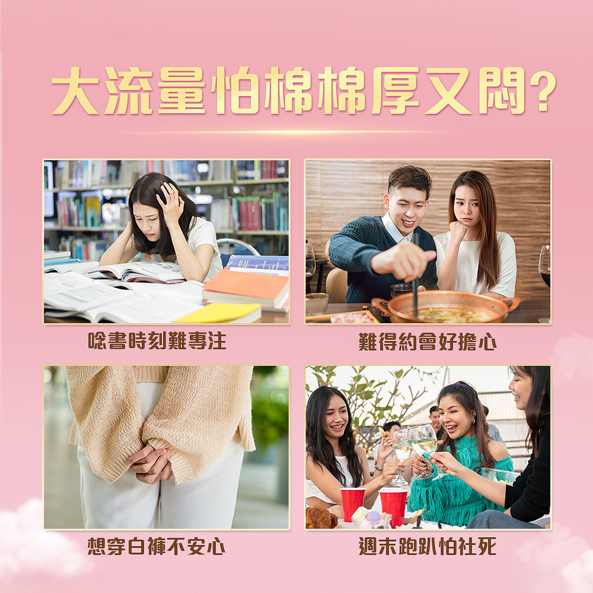 女生漂亮的外表下,你們可知道我們的生活有多少挑戰,先不說維持好身形、好肌膚,光是每個月姨媽來就是地獄!穿裙子怕側漏,穿褲子更煩,加長型超厚衛生棉絕對會讓貼身牛仔褲穿不下,這叫我們接下來聖誕節、跨年各種狂歡派對要如何美美出席,網路上哀嚎聲遍野「明明用了超厚衛生棉,卻還是外漏」、「月經量大到嚇死人,夜用衛生棉也擋不住」、「早上出門不到2小時,內褲已經慘不忍睹」、「忙到忘記換,去廁所發現有異味飄來」好的…各位請冷靜放輕鬆…