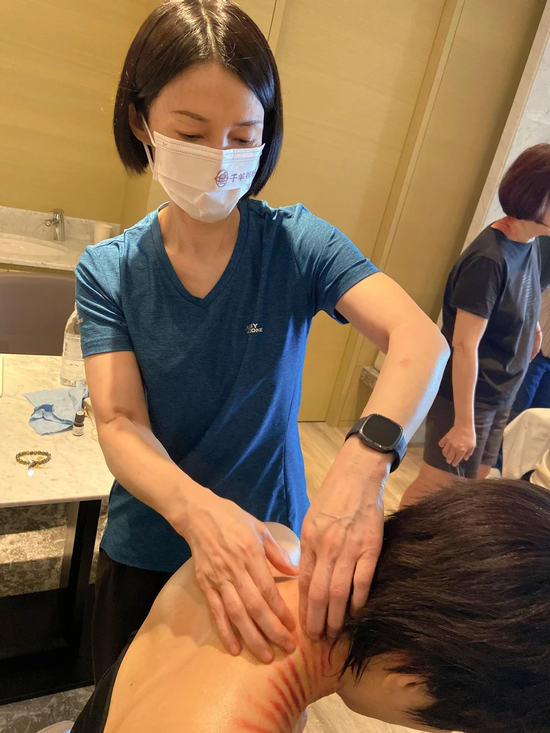 而始終將行善當作抓痧志業一部分的楊淑惠老師,培養抓痧師的過程中,也默默地幫助了多位二度就業婦女與單親媽媽,讓這些女性藉由習得抓痧手藝而重新建立自信,甚至獲邀進入千羊抓痧團隊,迎來就業曙光!楊淑惠老師對於這群媽媽級抓痧師愛徒們非常包容,甚至允許她們帶孩子一起上班,在千羊的大家庭一起成長。疫情後,受邀到50人以上公司行號進行抓痧服務、慈善團體公益抓痧邀約紛至沓來,楊淑惠老師這些年來用心栽培出的抓痧師娘子軍們,也成為千羊最大的後盾,老師與徒弟們手把手,一起將抓痧的技藝與好處傳遞給更多人知曉。