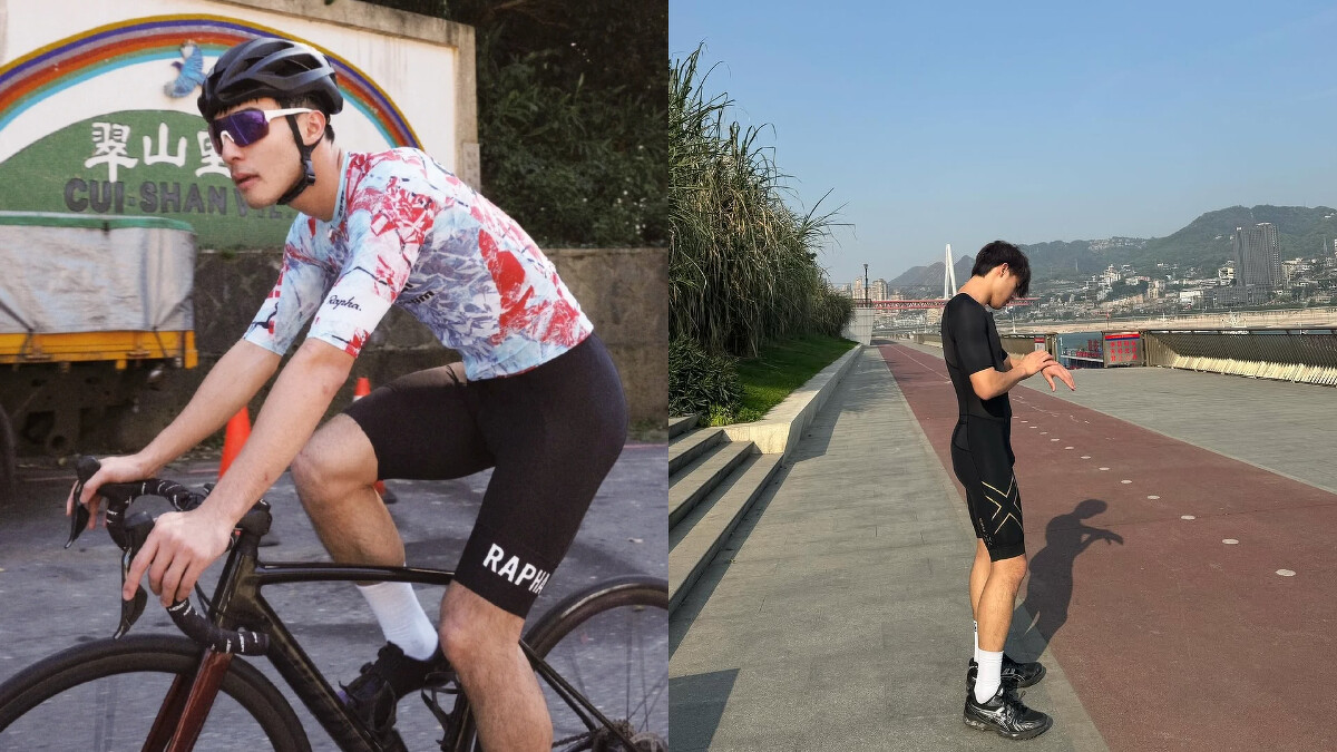 就算包緊緊也絲毫不妨礙他的好身材外露,騎車、路跑、打籃球、游泳都在他的運動清單內,除了有氧外,他也分享自己在健身房的運動裝備和日常,更直言自己每次出門前,也都在猶豫要不要健身,進到健身房裡也似乎只有暴汗和抱怨二擇一。