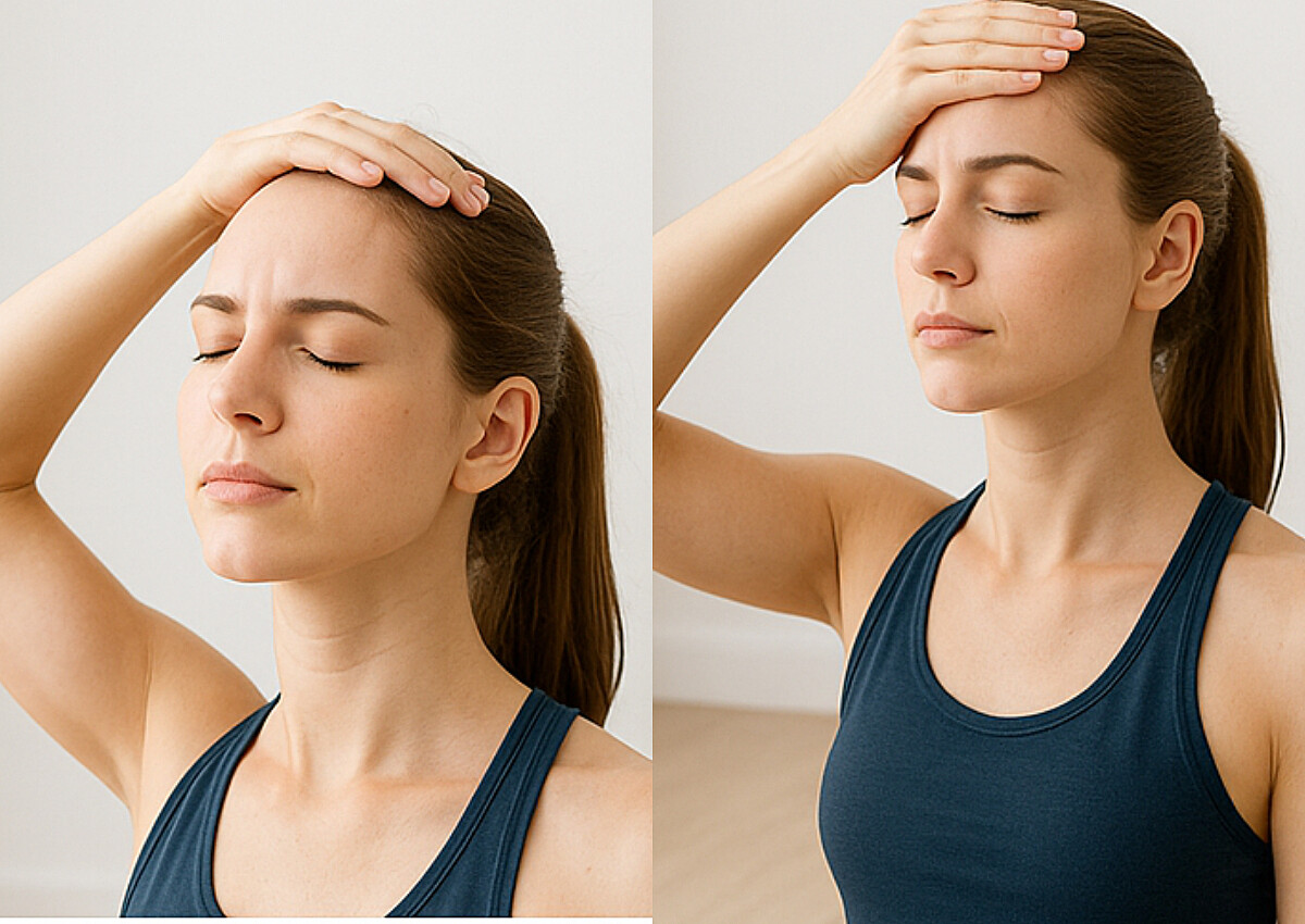 Step2、用手掌輕壓額頭(或後腦/側邊),同時頭部出力抵抗壓力,但不移動。