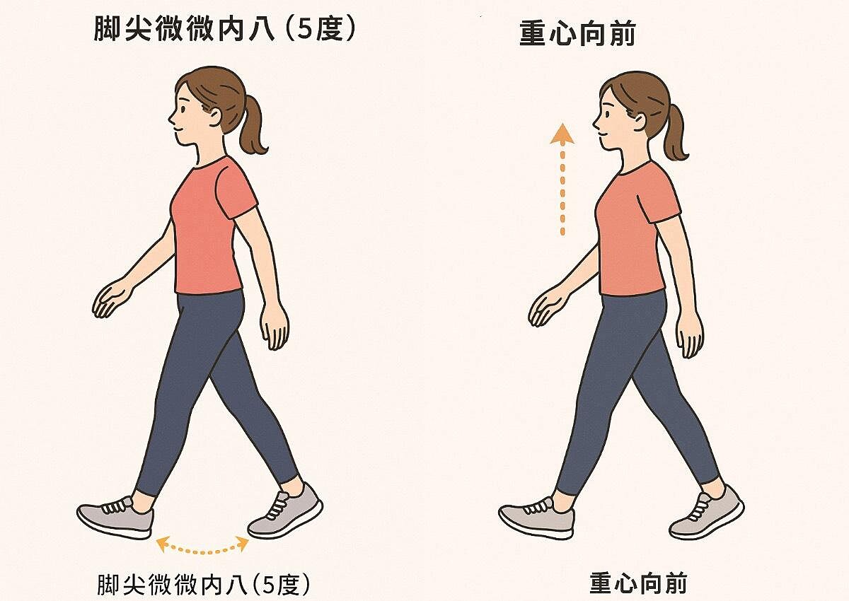 - 01. 走路時不要刻意扭腰、扭骨盆,以免反效果。