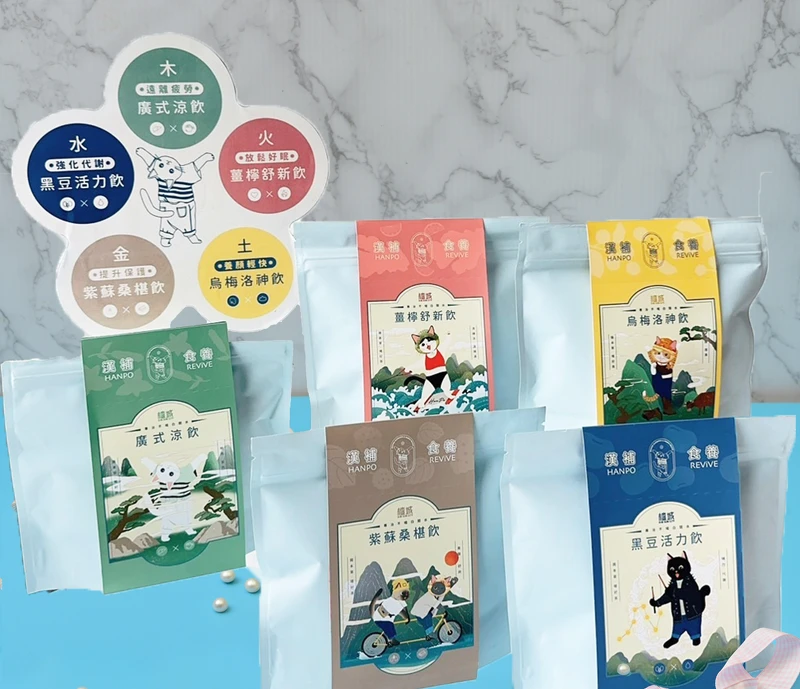檀島香港餐廳此次推出的五款漢方草本飲,有適合四季品飲的「廣式涼飲」、帶有檸檬、陳皮香甜的「薑檸舒新飲」、能生津解渴養顏美容的「烏梅洛神飲」、可百搭解膩的「紫蘇桑椹飲」以及促進代謝的「黑豆活力飲」。有感於現代年輕外食族總是貪圖方便而忽略了健康,對於漢方草本又較為備感距離,此次檀島力邀香港知名插畫師miss quai,在漢方草本飲的外包裝上,演繹各種不同類型的節氣養生視覺,且外包裝的腰封可沿虛線剪下,成為一張萬用小卡,可寫上貼心叮嚀送給家人好友傳遞情感,讓老祖宗的漢方智慧變得更加有趣且讓養生生活更為簡單。