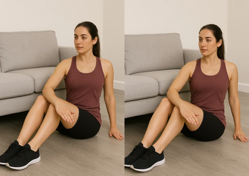 - 03. 兩腿併攏夾緊 5 秒 → 放鬆 3 秒。
