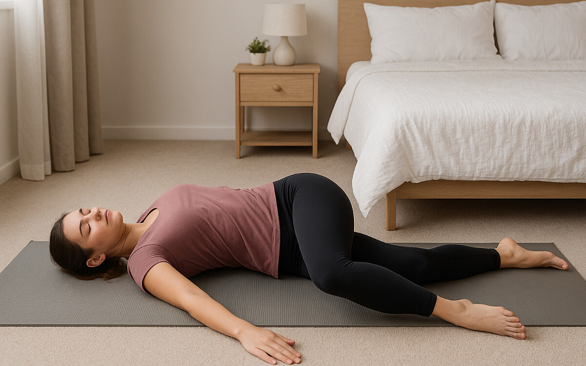是由Yoga Journal雜誌、哈佛健康出版社Harvard Health Publishing https://www.health.harvard.edu/ 所提出,此動作能放鬆神經系統,同時輕度拉伸腿後肌,幫助入睡又維持基礎代謝率。