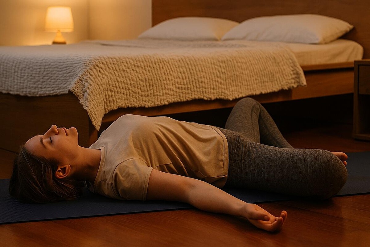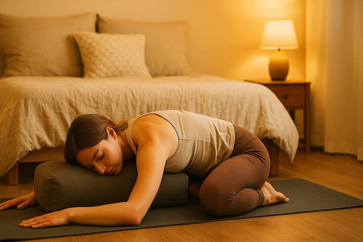 剛開始很難抗拒手機誘惑,只能把手機放在另一個房間。當我真正開始練習時,像「雙腿貼牆」、「仰躺扭轉」這些動作,竟帶來意想不到的安定感。到第三天,我的入睡時間明顯縮短,從平常的20–30分鐘降到幾分鐘。