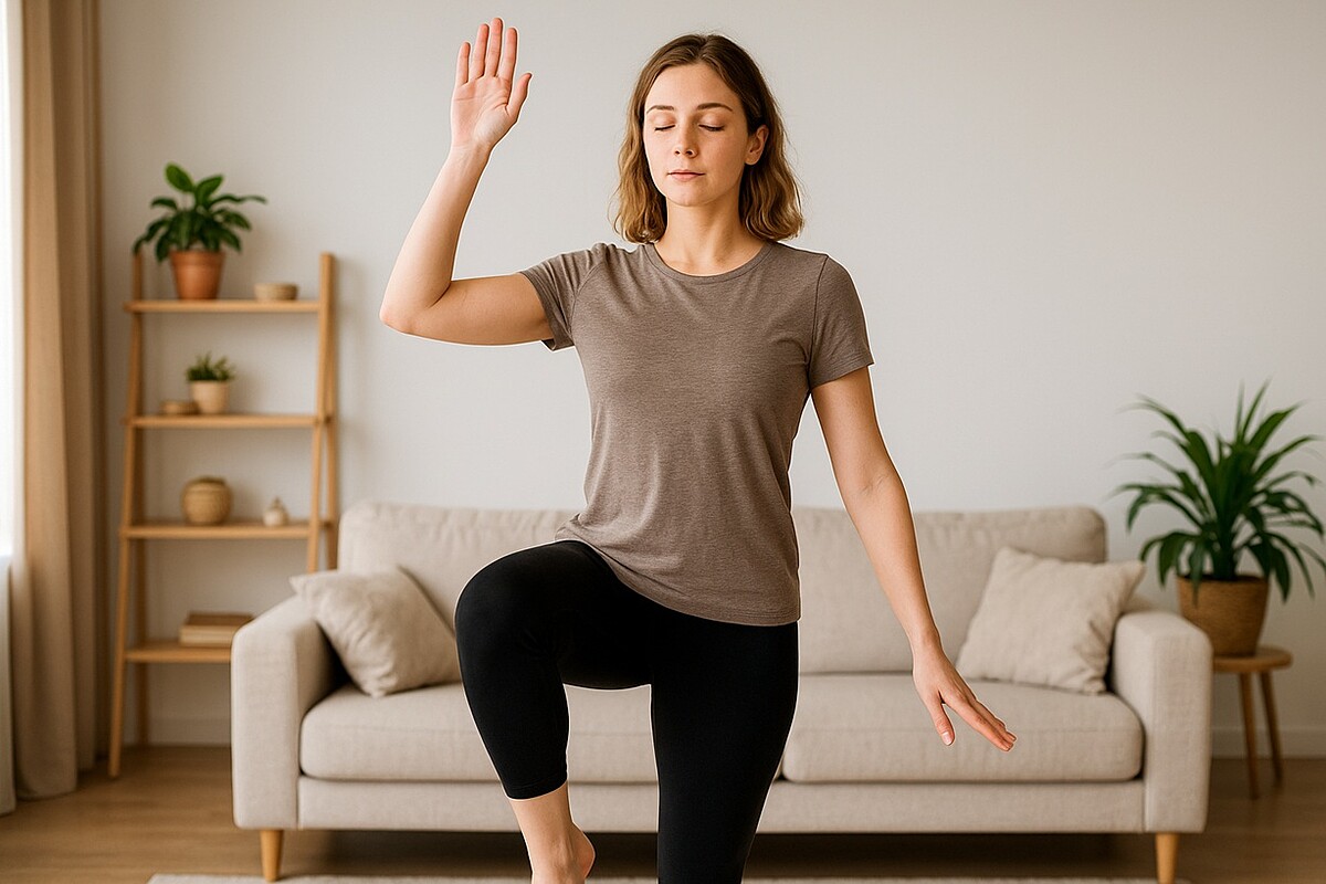 動作二:單腿站立,雙手平舉 - 挑戰平衡感官