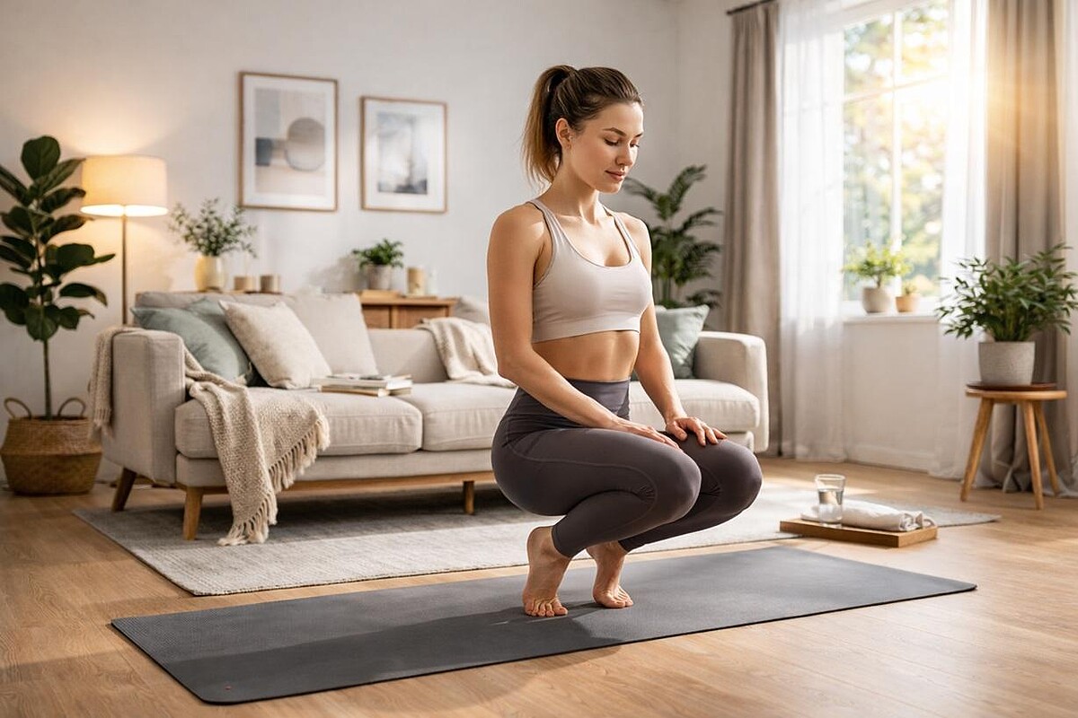 透過金剛蹲,可以感受到腿部發熱與肌肉發力的成效,是一組適合居家進行的高效率鍛鍊。