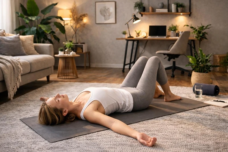 ●全身平躺放鬆,雙腿自然微彎。