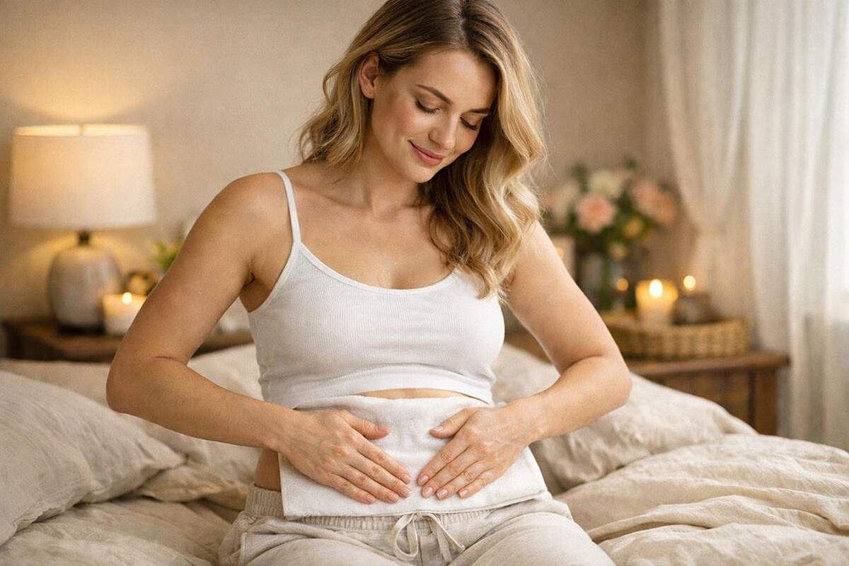 若妳最近壓力特別大、肚子容易受寒,可以在棉布上方加一個小型加熱墊,熱敷約10分鐘。這能加強血液循環,讓療癒效果深入底層。
