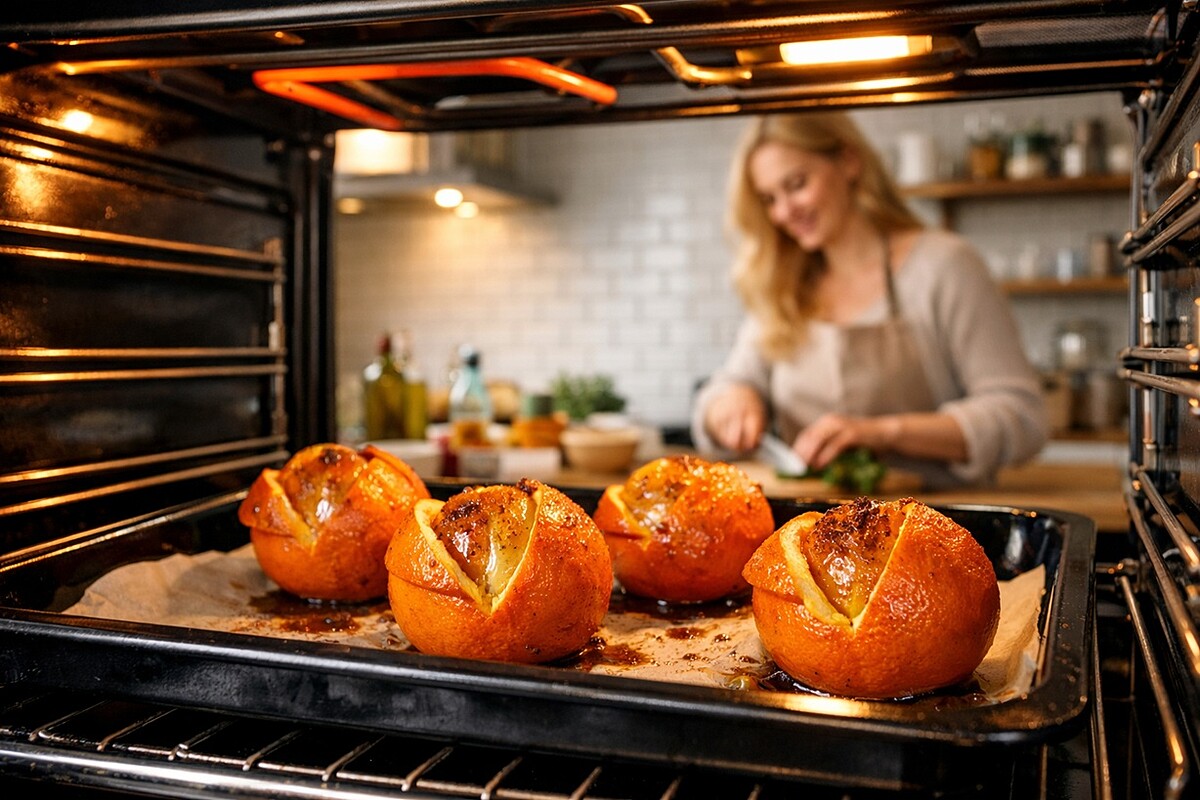 - 烤10-15分鐘,聞到柑橘香氣、果皮略為焦黃即可