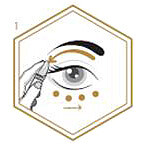 2- 將噴嘴垂直放在內眼角下方,由內往外按壓四點至太陽穴。