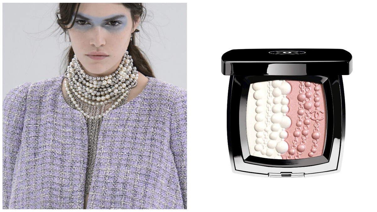 專為亞洲女性設計的限量彩妝,以香奈兒女士熱愛的珍珠長鍊為靈感,透過珍珠母貝的光澤,來烘托臉部肌膚。在現場一打開就忍不住驚呼:也太優雅了~珠光白與紫粉的雙色立體珍珠雕花,可以用來調整黯沉膚色,帶來細緻珍珠光澤,喚醒清新膚色。