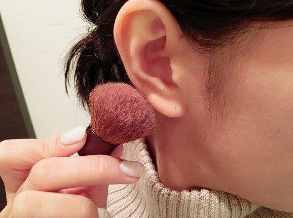 步驟2:將腮紅刷輕刷於整個耳廓,到耳垂時則以小畫圈方式多刷一些上去。